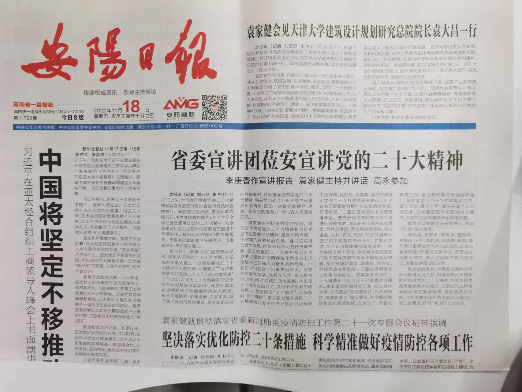 袁家健書記代表市委、市政府對袁大昌總經(jīng)理一行的到訪表示歡迎,并從工業(yè)重地、樞紐要地、文旅勝地、農(nóng)業(yè)基地、精神高地五個方面簡要介紹了安陽的基本情況。他指出,黨的二十大剛剛閉幕,習(xí)近平總書記首站就到陜西延安和安陽市視察指導(dǎo)工作,這為安陽發(fā)展帶來了千載難逢的重大歷史機(jī)遇,讓安陽人民倍受鼓舞、倍感振奮、倍增信心。袁書記表示,深入貫徹落實(shí)黨的二十大精神和習(xí)近平總書記的重要講話精神,貫徹落實(shí)省委、省政府關(guān)于“設(shè)計河南”戰(zhàn)略部署,加快現(xiàn)代化區(qū)域中心強(qiáng)市建設(shè),更需要以高水平規(guī)劃引領(lǐng)高質(zhì)量發(fā)展。天津大學(xué)歷史積淀深厚、學(xué)科優(yōu)勢明顯,總院有限公司在城鄉(xiāng)規(guī)劃、建筑設(shè)計、文保修繕、風(fēng)景園林等領(lǐng)域都有不同凡響的建樹。期待雙方能進(jìn)一步加深對接,建立良好溝通機(jī)制,進(jìn)一步擴(kuò)大合作領(lǐng)域和范圍,在更多高質(zhì)量的項(xiàng)目上展開深入合作,實(shí)現(xiàn)優(yōu)勢資源共享,推進(jìn)校地協(xié)同發(fā)展。