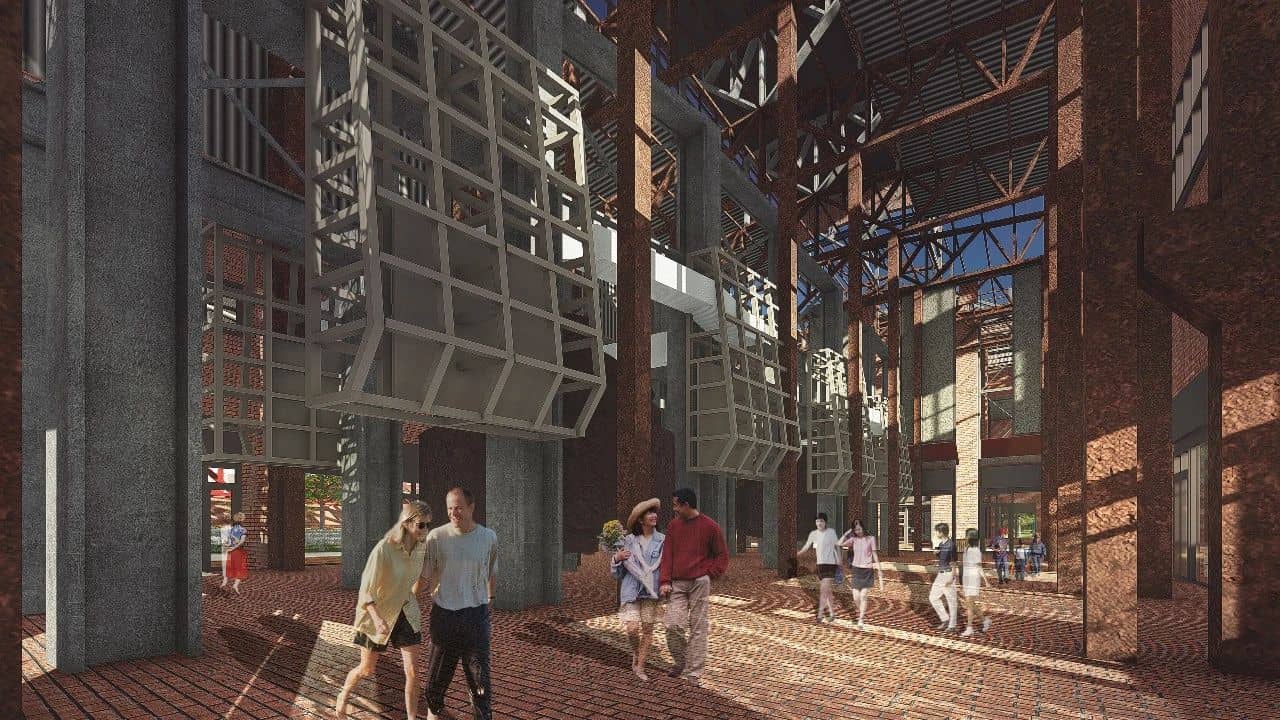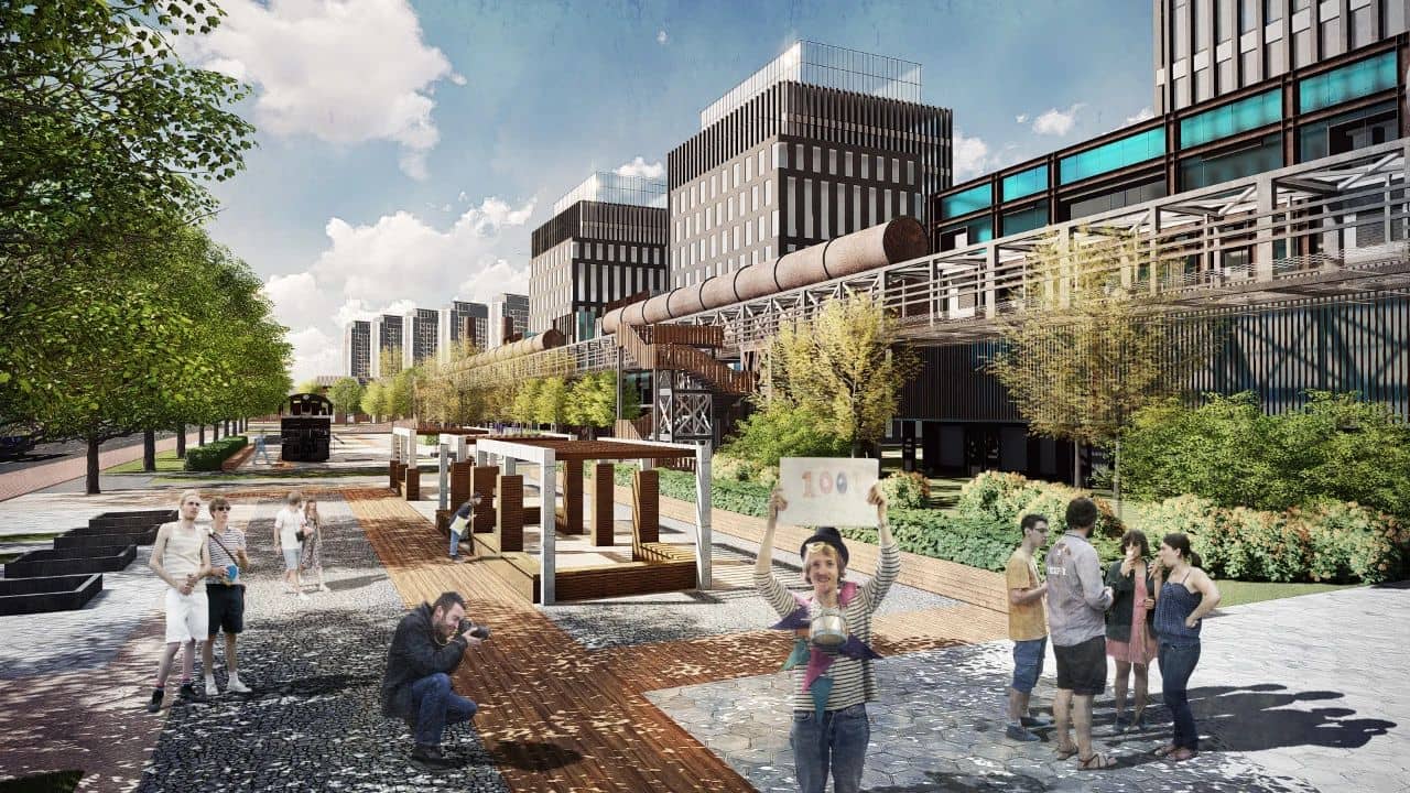 規(guī)劃將二煉鋼廠區(qū)構(gòu)筑物、鐵軌、管廊、煙囪等工業(yè)歷史記憶點進行保留和建筑景觀提升改造。通過增加現(xiàn)代建筑材質(zhì)及現(xiàn)代建筑手法,使工業(yè)文化與現(xiàn)代功能相結(jié)合,將區(qū)域打造成二煉鋼科創(chuàng)街區(qū)。唐鋼的總部和大腦將留在這里,與鋼鐵生產(chǎn)相關(guān)的研發(fā)、設(shè)計、測試、維修、運維也會留在這里,突顯唐鋼地區(qū)本身獨特的工業(yè)魅力,綻放唐鋼地塊的新紀元新風彩。