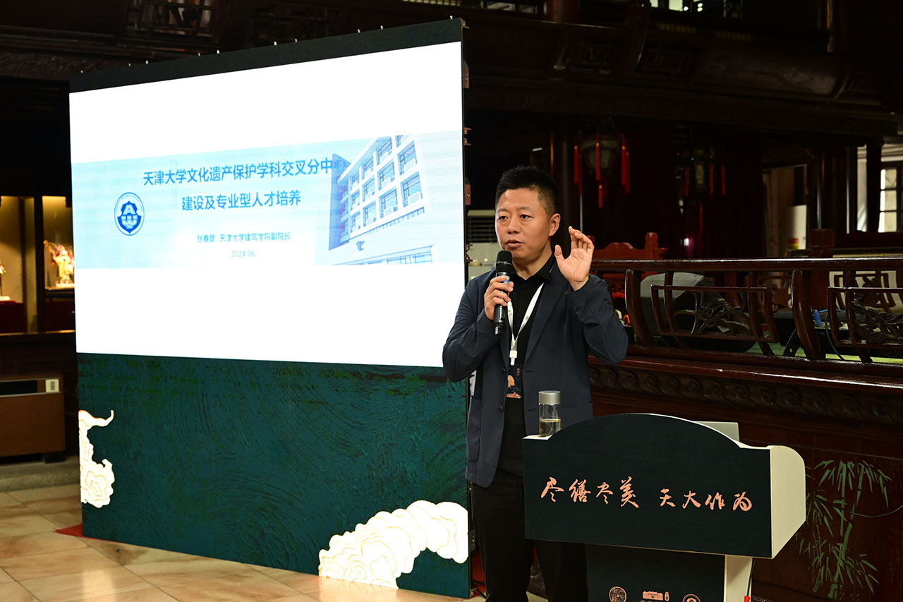 張春彥副院長向大會介紹了天津大學文化遺產(chǎn)保護學科交叉分中心建設(shè)及專業(yè)型人才培養(yǎng)情況,聚焦不同類型文化遺產(chǎn)的核心問題,借助學科交叉平臺,集合、應(yīng)用最新科研成果和技術(shù),與工程實踐深度結(jié)合,解決本領(lǐng)域內(nèi)遺產(chǎn)保護的實際問題。