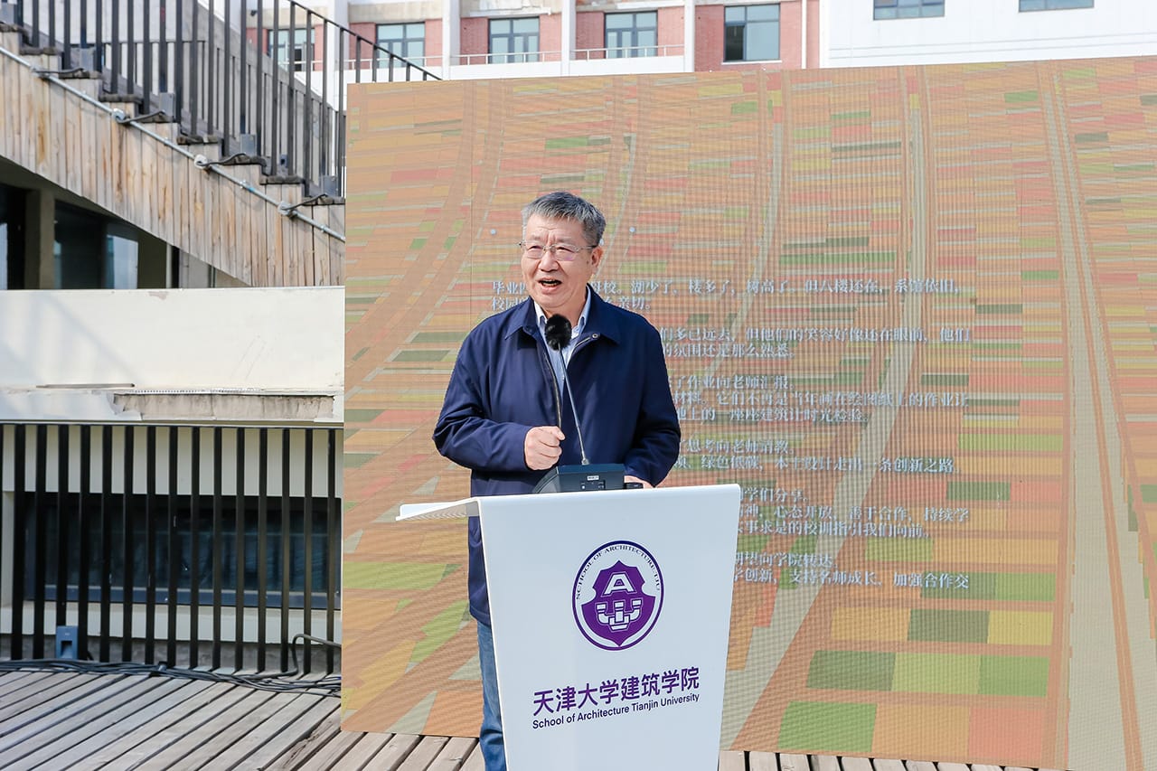 一同出席開幕式的還有全國工程勘察設計大師、清華大學建筑學院教授、北京建筑大學建筑與城市規劃學院特聘院長張杰,全國工程勘察設計大師、天津大學講席教授、天津華匯工程建筑設計有限公司(以下簡稱:華匯建筑設計)總建筑師周愷,天津大學校友與基金事務處處長潘峰,崔愷院士在學期間的教師代表魏挹澧、同學代表王其亨、劉燕輝、楊昌鳴、吳宙航、呂永泉、張華、運迎霞、胡瑾、李惠榮,中國建筑設計院副總建筑師、一合建筑設計研究中心主持建筑師柴培根,天津大學北京校友會副秘書長陳志萍,天大設計總院總建筑師、顧志宏工作室總監顧志宏,華匯建筑設計規劃總裁、天津大學客座教授黃文亮,華匯建筑設計顧問總建筑師歐陽植、總經理、副總建筑師張一,香港大學建筑學院周江評教授、黃健翔副教授、何涵晞博士,本土設計團隊天大校友代表任祖華、潘天佑等,天津大學建筑學院講席教授、《城市 環境 設計》(UED)總編輯孔宇航,天津大學建筑學院宋昆教授等教師及學生代表。