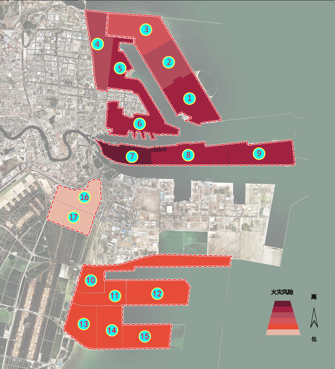 南港工業區作為“中國領先、世界一流”的世界級重化產業和港口綜合功能區,針對區內火災風險性很大的大型油庫、煉油、乙烯等煉化產業為主的特點,著眼于為區內生產、生活提供堅實、可靠、高效的消防安全保障,依據國內外針對用地性質和火災危險源的火災風險性創立的先進火災風險評估方法,科學構建三層指標體系完善區內火災風險評估,從消防安全布局、消防隊站建設、消防裝備配備、消防應急救援、消防給水安全、消防通信暢通等六大方面對工業區的消防系統建設提出高標準要求,提出“共建、共擔、共享”消防規劃建設理念,構建“國際一流、國內領先”的化工區消防安全新體系。