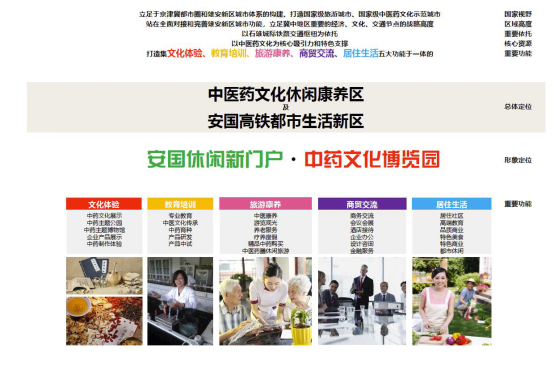 立足于京津冀都市圈和雄安新區城市體系的構建,打造國家級旅游城市、國家級中醫藥文化示范城市。站在全面對接和完善雄安新區城市功能,立足冀中地區重要的經濟、文化、交通節點的戰略高度以石雄城際鐵路交通樞紐為依托,以中醫藥文化為核心吸引力和特色支撐打造集文化體驗、教育培訓、旅游康養、商貿交流、居住生活五大功能于一體的安國休閑新門戶·中藥文化博覽園。