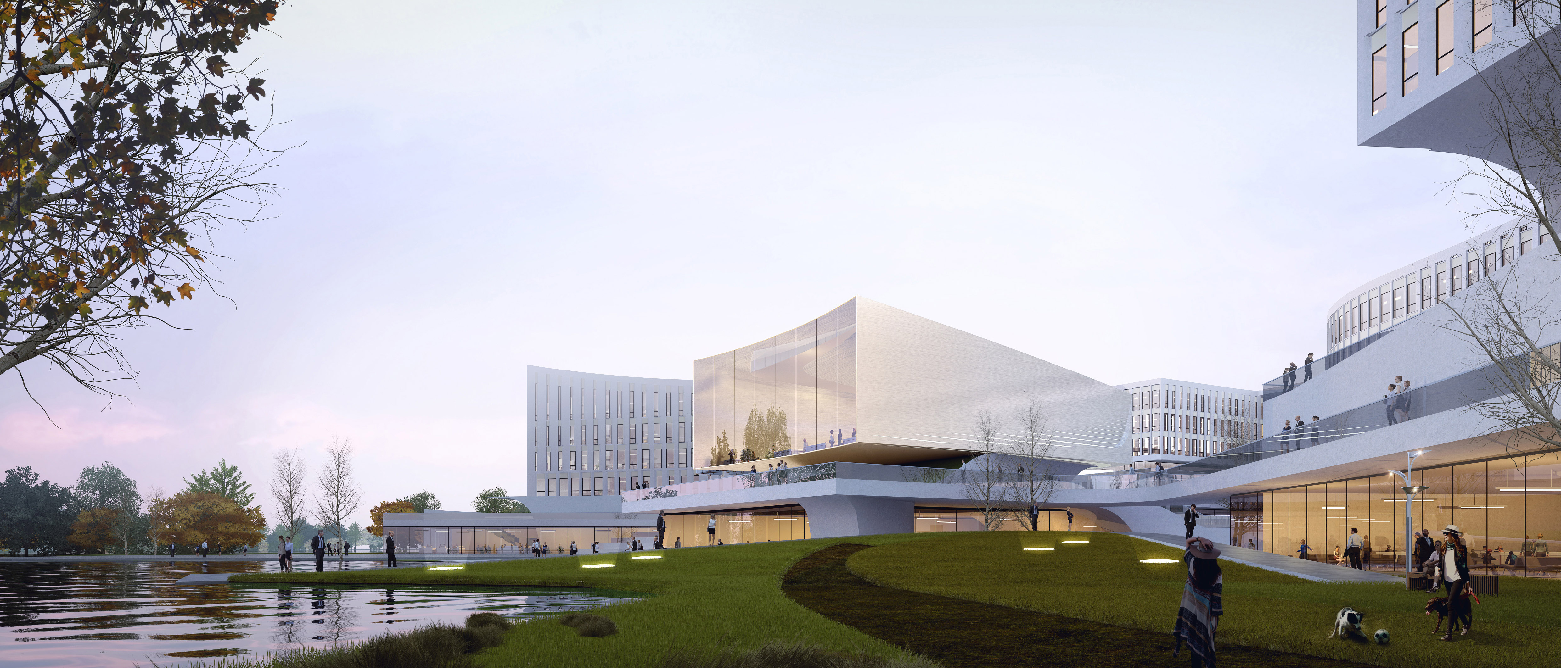 成都市羊安產(chǎn)業(yè)新城綜合運(yùn)營(yíng)中心整體建筑群呈現(xiàn)舒展向上的態(tài)勢(shì),如展開(kāi)的羽翼,建筑形體的高低錯(cuò)落和建筑頂部的起翹形成舒展優(yōu)美的建筑天際線,建筑表皮通過(guò)精細(xì)靈動(dòng)的格構(gòu)與純凈的白色調(diào)立面材質(zhì)形成富有動(dòng)感與韻律的展翼形態(tài),體現(xiàn)“展翼羊安,夢(mèng)想啟程”的設(shè)計(jì)主題和靈動(dòng)現(xiàn)代的設(shè)計(jì)語(yǔ)言,以成都市自古以來(lái)具有開(kāi)創(chuàng)精神的城市品格和站在面向未來(lái)的嶄新起點(diǎn)上,以成都市羊安產(chǎn)業(yè)新城綜合運(yùn)營(yíng)中心為核心開(kāi)創(chuàng)嶄新篇章的蓬勃?dú)鈩?shì)。