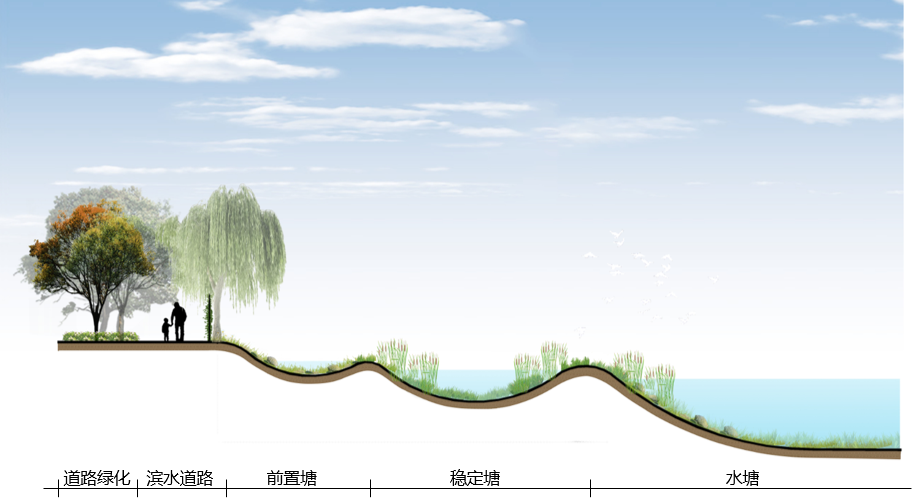 天津港原生態濕地剖面示意圖