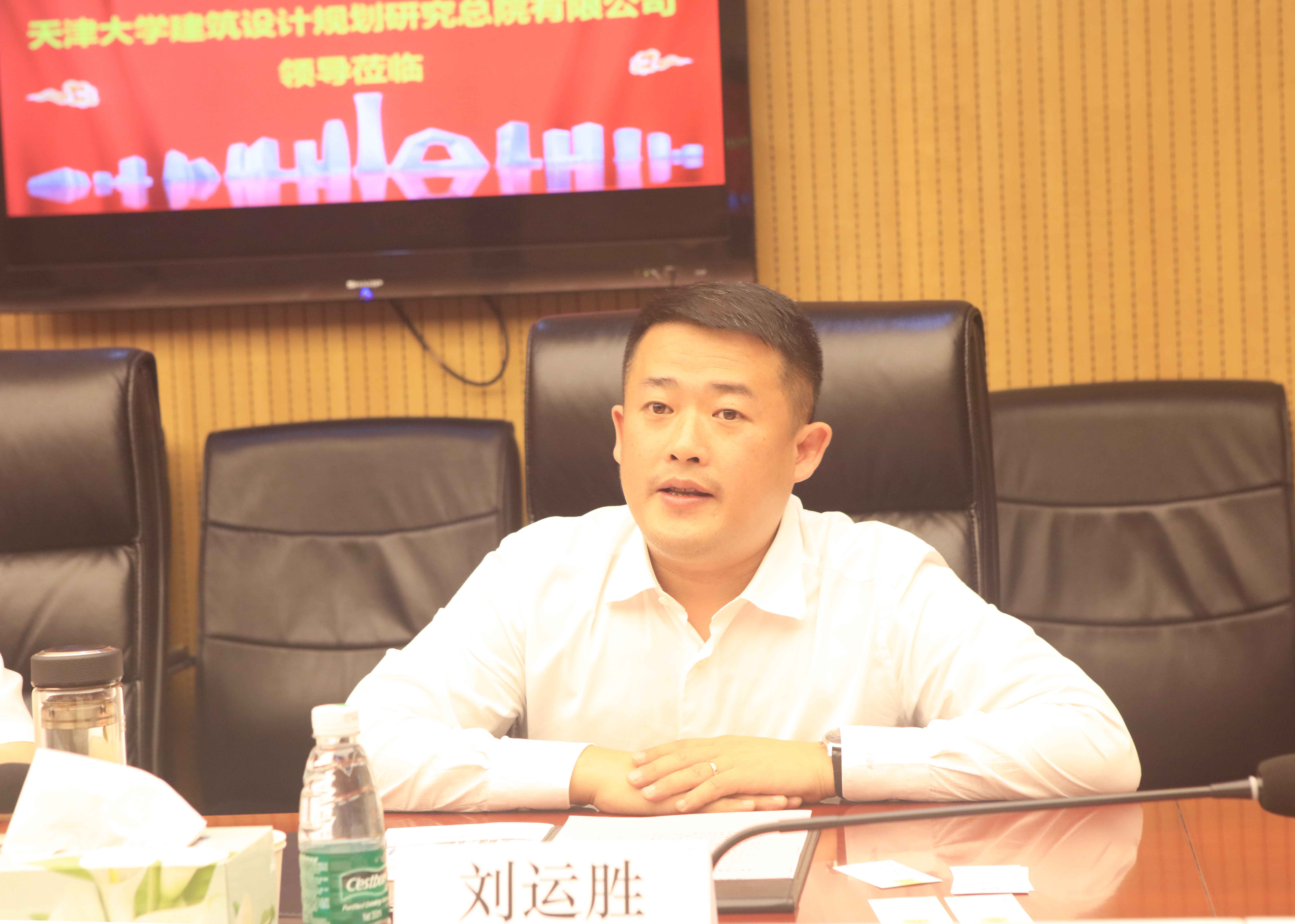 劉運勝董事長就中建三局的發展歷程、輝煌業績業務結構及市場布局做了簡要介紹,并對工程局在超高層、基礎設施、投資領域的建設成果進行了著重說明。他表示,天大新校區圖書館、天大化工平臺是北京公司與天大設計總院良好合作的典范,希望未來雙方能夠優勢互補,在更廣闊的領域開展合作。