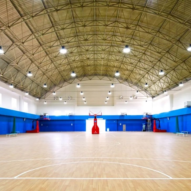 本次共對7個單體建筑進行改造,包括大劇場、圖書館、藝體培訓(xùn)中心、綜合球館、籃球館、勞模療休養(yǎng)中心、足球場,總建筑面積約3.8萬平方米。