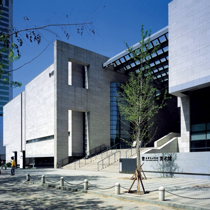 天津美術學院美術館是一座復合功能的美術館,包括展覽館、報告廳、文化超市、創(chuàng)作工作室、圖書館及教學用房等六個主要功能區(qū)及地下停車庫。建筑主體由四幢多層裙房和一幢高層塔樓組成,主入口臺階、兩道斜墻、玻璃天棚、空中步廊以及一座通透挺拔的玻璃光庭將幾組體塊聯(lián)系在一起。