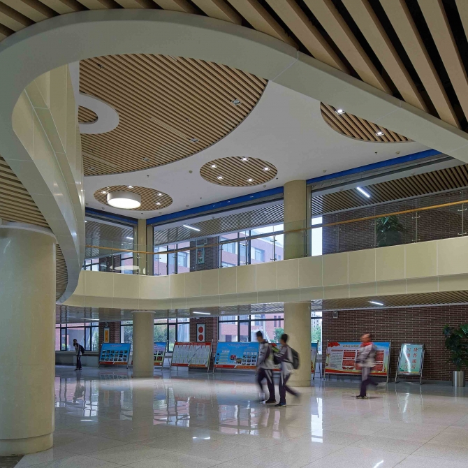 設計中引入教學綜合體的設計概念,在有效節約用地的同時,實現了教學流線的連貫一致,保證了功能的可達性,提升了教學工作開展的便利性。設計立足于通過對建筑的整體布局和體量組合,創造具有強烈時代感,又富于自身獨特魅力的建筑形象,使之成為桓臺縣南部一組重要公共建筑群,整體建筑為現代風格,穩重、典雅、清新、活潑,充分體現了當代校園本體文化。