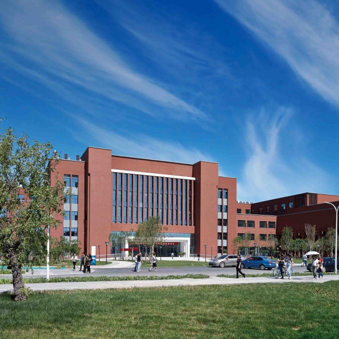 化工材料教學組團對天津大學衛津路校區的建筑有一定的傳承,風格穩健大氣;同時又處理得相當簡練,以豎直線條作為母題貫穿始終,簡潔現代。該項目在整個校園規劃體現了以學生活動和學生生活為中心的總體思想,一個具有人文氣息的、可持續發展的、綠色低碳的、面向未來的新型校園