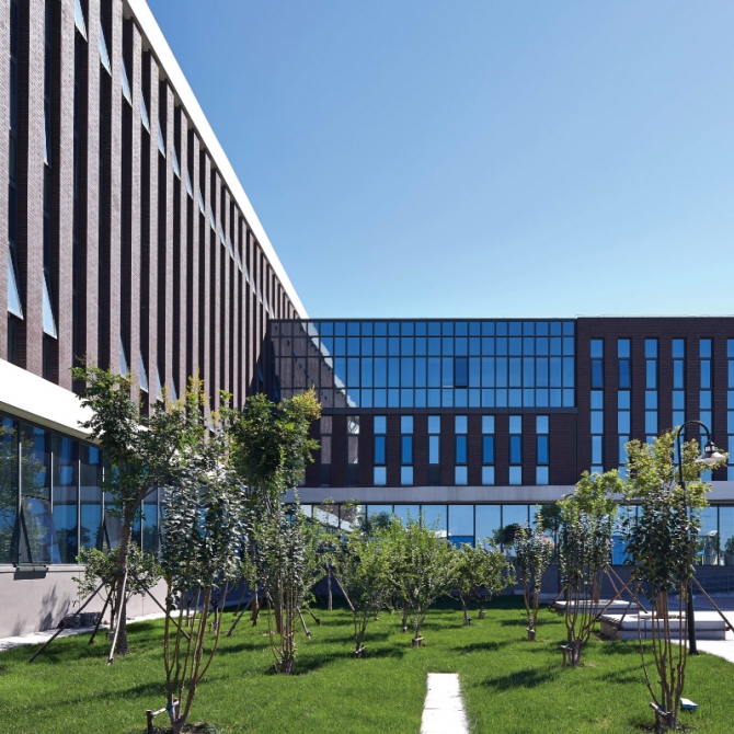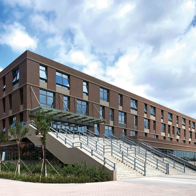 項目從整體規劃、單體造型及色彩設計上凸顯了新校區機械教學組團作為工科學院的嚴謹高效的氣質,作為整個校園對外的形象展示,提高了國家重點實驗室的展示度。 在空間設計上充分考慮實驗及教學、 辦公等功能的有機結合,實現空間利用率的最大化,滿足師生使用的多種需求。為學科發展提供最堅實的基礎。 考慮熱動大樓油庫使用的安全性,將熱動大樓規劃于整個機械學院組團的東南角,臨近高速路立交橋的交叉口,既降低了對校園內部環境的危險性影響。本項目利用多種技術手段,實現節能環保的需求。具有顯著的節能、節水和提高資源利用率的效果,有效解決關系師生健康的環境問題。