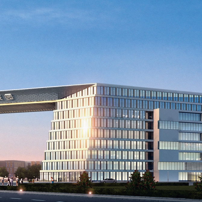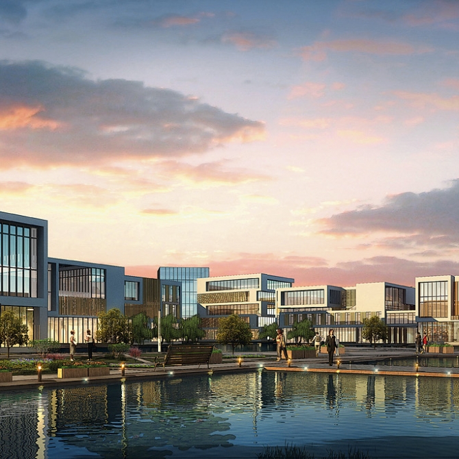 天津北大科技園位于天津市東麗區,設計方案以“創業小鎮 夢想之舟”為主題,打造了一個綠色生態、水景花園式的創業小鎮。