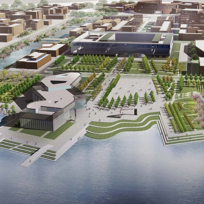 以“百年筑夢”為景觀方案主題,通過傳承歷史文脈的景觀軸線、隱喻琢玉成器的景觀形態和象征百年樹人的景觀結構表現出來。設計團隊提出“一中心、兩理念”的設計思想,即“以學生為中心,注重景觀的文脈延續和生態的可持續”。