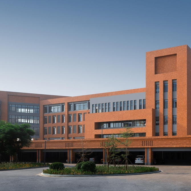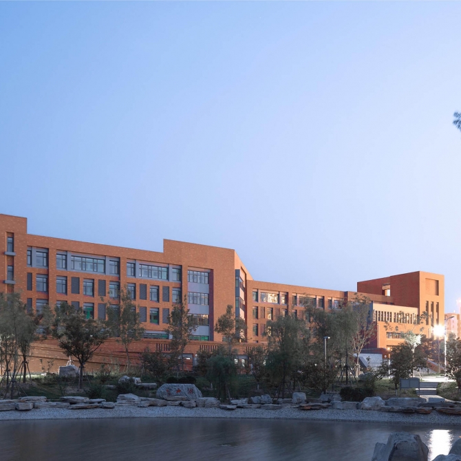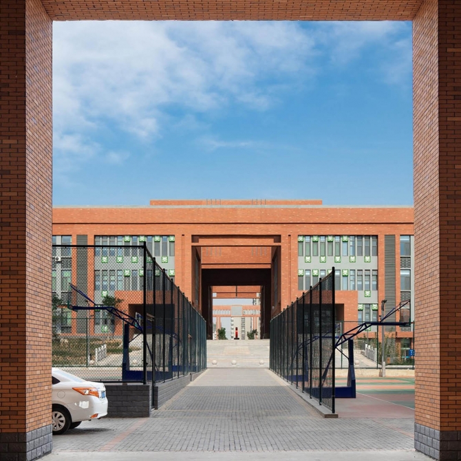 在校園的單體建筑設計中,力求打造具有章丘四中文化的現代時尚的建筑風格。校園以紅磚建筑為主要色調,灰白色體塊穿插其中,既體現中國書院獨具魅力的典雅精神,又展現了現代素質教育中學的時尚風采。