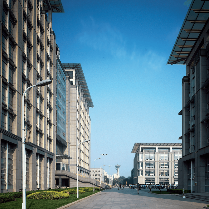 方案的總體景觀與造型設計構思以突出建筑的現(xiàn)代感和韻律感為基調,強調總體空間環(huán)境的協(xié)調和均衡,以玻璃、石材、型鋼為基本材料,精密加工,給人以強烈的時代感。