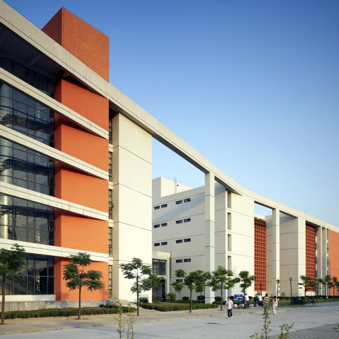 鄭州大學工科園注重與周邊建筑和環境之間的和諧整體關系,使之融入總體校園之中。設計依據現代教育模式發展現狀,對教學建筑進行更新組織和歸類,實現建筑和環境資源的共享;設計采用現代簡約的建筑造型語言和普通實用的建筑裝飾材料,強化優美的建筑體量關系和舒適人性化的場所創造,實現經濟、適用、美觀的高度統一。