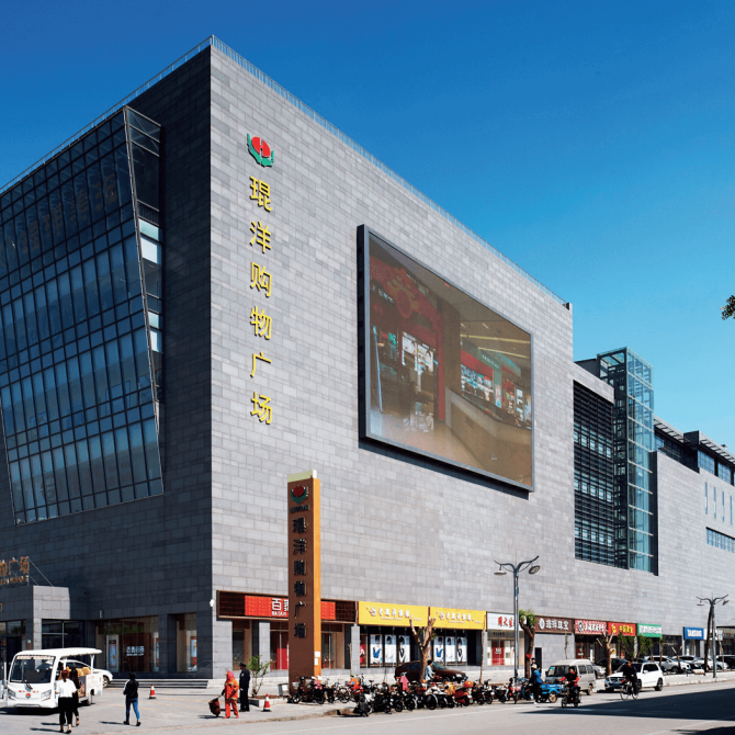 琨洋購物廣場西側沿主要商業街有200米的連續界面,南側有城市廣場,并從城市環路可以直接看到本項目。在建筑立面造型上以端莊穩重、典雅大方為前提,強調整體的雕塑感。