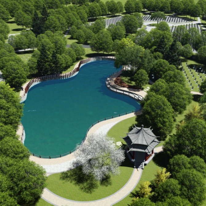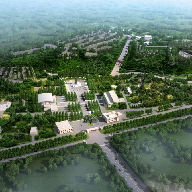 以“國家的記憶、民族的豐碑”作為設(shè)計主題,規(guī)劃中突出烈士陵園的緬懷之境;完善相應(yīng)的功能及配套設(shè)施;分析園區(qū)制高點與城市道路之間的視線關(guān)系,以烈士主題雕塑與園區(qū)服務(wù)建筑相結(jié)合的形式,塑造城市新望點,提升園區(qū)影響力。