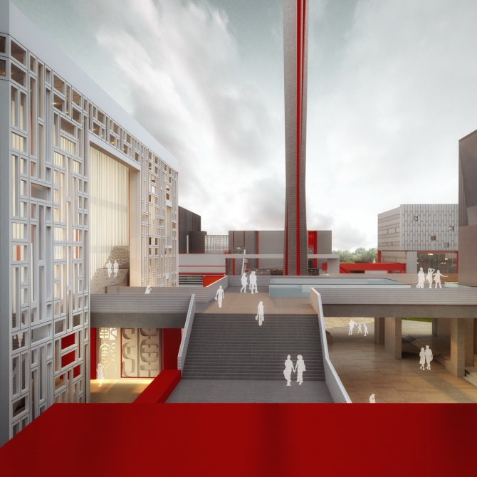 文化建筑包括市民文化交流中心、群眾藝術(shù)中心、科技館、檔案館(四館合建)。整個(gè)文化建筑仿佛綻放的花朵,呼應(yīng)了“魯西名城 盛世綻放”的設(shè)計(jì)主題。各場(chǎng)館錯(cuò)落而建,地下車(chē)庫(kù)分別設(shè)置各文化建筑的地下門(mén)廳,方便直達(dá)各個(gè)場(chǎng)館。