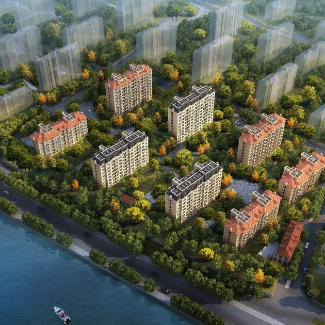 項目位于天津生態城中心漁港區域內,總建筑面積為39萬平方米,包括高層住宅、商業、地下室等。
