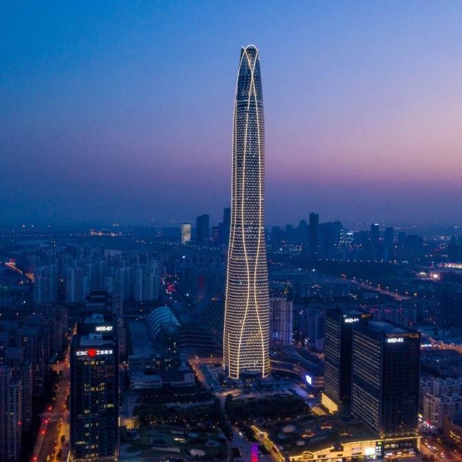 項目總建筑面積為38.998萬平方米,其中地下4層,地上96層,高530米。