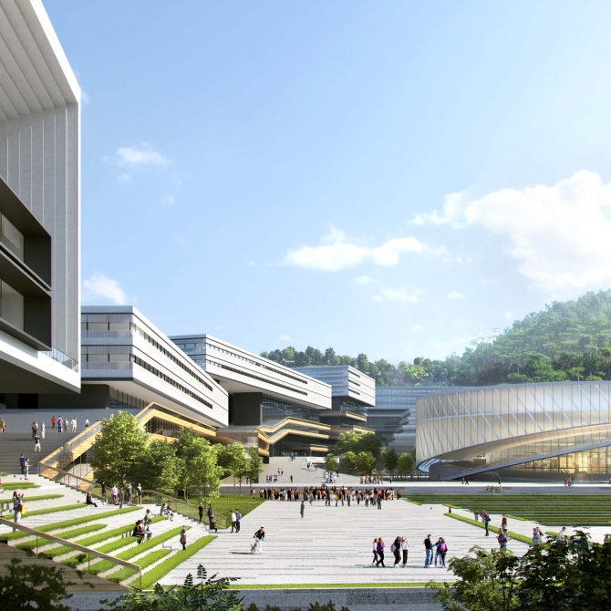 大氣靈動(dòng)的帶形建筑群依山傍勢(shì),起伏跌宕,與山水呼應(yīng);完備的學(xué)生教學(xué)生活空間與自然山水環(huán)境景觀充分融合,組成富有趣味、智慧健康的美好山地校園生活,打造出“書(shū)香溢谷”的校園文化氛圍。“青春悅動(dòng)”文體活動(dòng)中心面向城市充分開(kāi)放;富有電力科技特色的校園建筑呈現(xiàn)出現(xiàn)代時(shí)尚、簡(jiǎn)潔大氣的青春風(fēng)采校企互動(dòng)大樓為打造未來(lái)校企雙制、工學(xué)一體的高素質(zhì)創(chuàng)新人才,提供了多樣化的實(shí)踐實(shí)訓(xùn)基地教城融合拓展區(qū)為學(xué)校升級(jí)、教師生活、產(chǎn)教城融合創(chuàng)新預(yù)留了寶貴的發(fā)展空間。