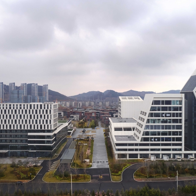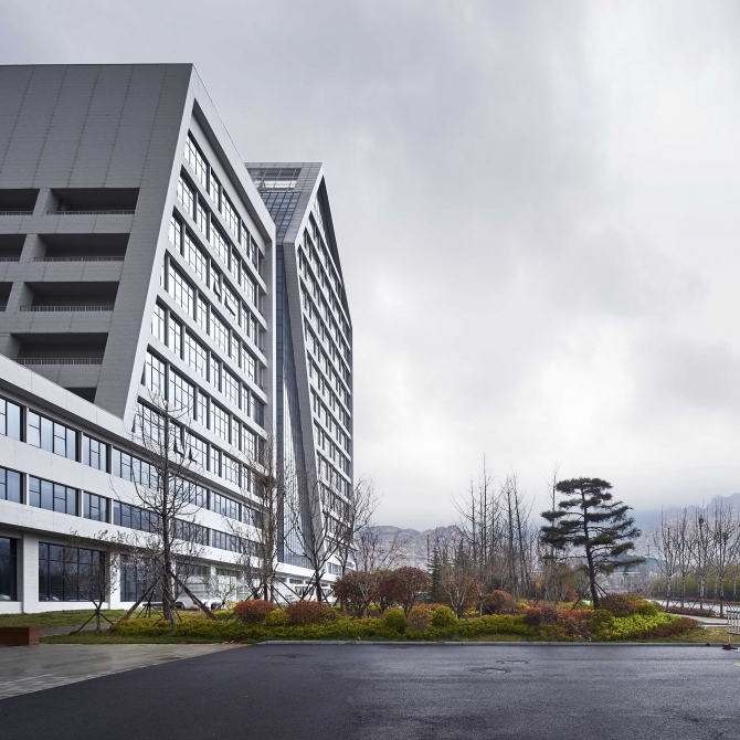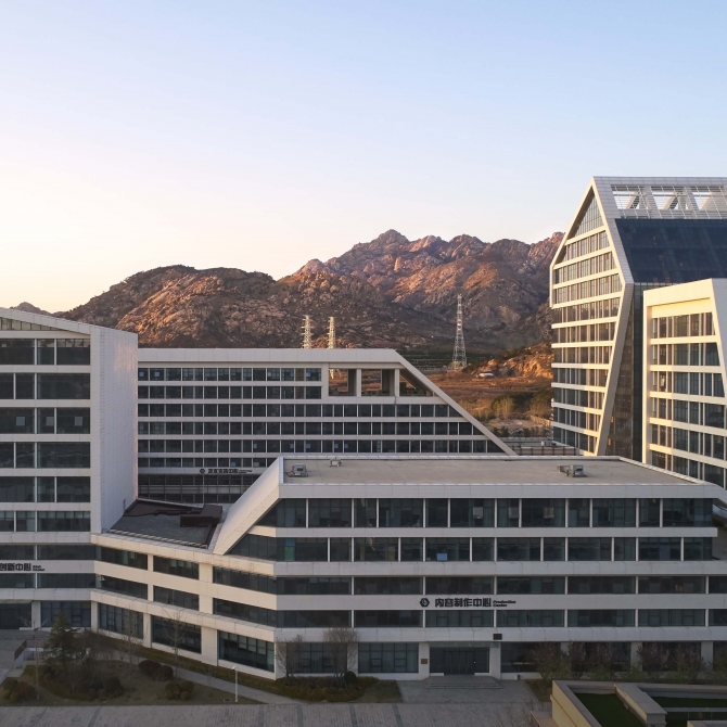 創(chuàng)智產(chǎn)業(yè)園的設(shè)計強調(diào)以人的生活工作為空間線索,在單體設(shè)計上采用相互連接的方式,構(gòu)成了空間豐富的園區(qū)建筑群,體現(xiàn)了創(chuàng)智產(chǎn)業(yè)園所強調(diào)的突出公共性和開放性的現(xiàn)代精神。同時,面對現(xiàn)代城市飛速發(fā)展和擴(kuò)張,“大隱隱于市”是城市人追求高端生活品質(zhì)的夢想,同時也是建筑師為未來城市描繪的愿景、為新的城市生產(chǎn)生活環(huán)境提出的目標(biāo)。考慮到人們寄托在自然中的情懷和對自身精神世界的追尋,與環(huán)境融合的創(chuàng)智產(chǎn)業(yè)園既有現(xiàn)代城市所能提供的便利,也有東方人心中的山水情懷。將城市的空間形態(tài)特征與功能和青島西海岸獨特雄渾而蒼茫的山水意境結(jié)合起來,建造以人的精神和文化價值觀為核心的科技園區(qū),為置身其中、工作勞碌的使用者的日常生活注入情懷和詩意,令每一個使用者生活、工作、游走于其間的同時能夠體驗、感知、享受群山環(huán)繞、融于自然的感覺和創(chuàng)業(yè)的激情。